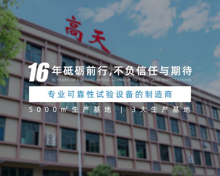 東莞市高天試驗設備有限公司是一家可靠性試驗設備的制造商,我們專注于可靠性試驗已有19余年,在此期間,我們竭盡所能,努力為客戶提供完善的實驗室規(guī)劃方案,匹配質優(yōu)價廉的試驗設備。高天擁有完整的研發(fā)團隊,其中有很多人都躋身試驗設備行業多年,能為顧客提供完善的技術方案,以幫助廣大客戶在確保其產品品質的前提下,有效降低經營成本,提升經營競爭優(yōu)勢。高天生產的設備種類眾多,同時擁有實用新型專利證書,銷售范圍覆蓋全國。公司自成立以來堅決以精美的外觀設計,認真務實的工作精神,良好周到的后續(xù)服務,贏得了客戶良好的口碑。我們將一如既往,堅持以“誠信經營”為...